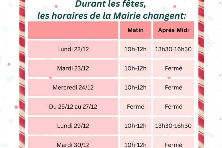Lundis - mercredis de 14h à 16h30, Samedis de 10h à 12h