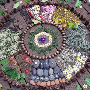 Réalisation d'une œuvre éphémère avec des matériaux naturels.