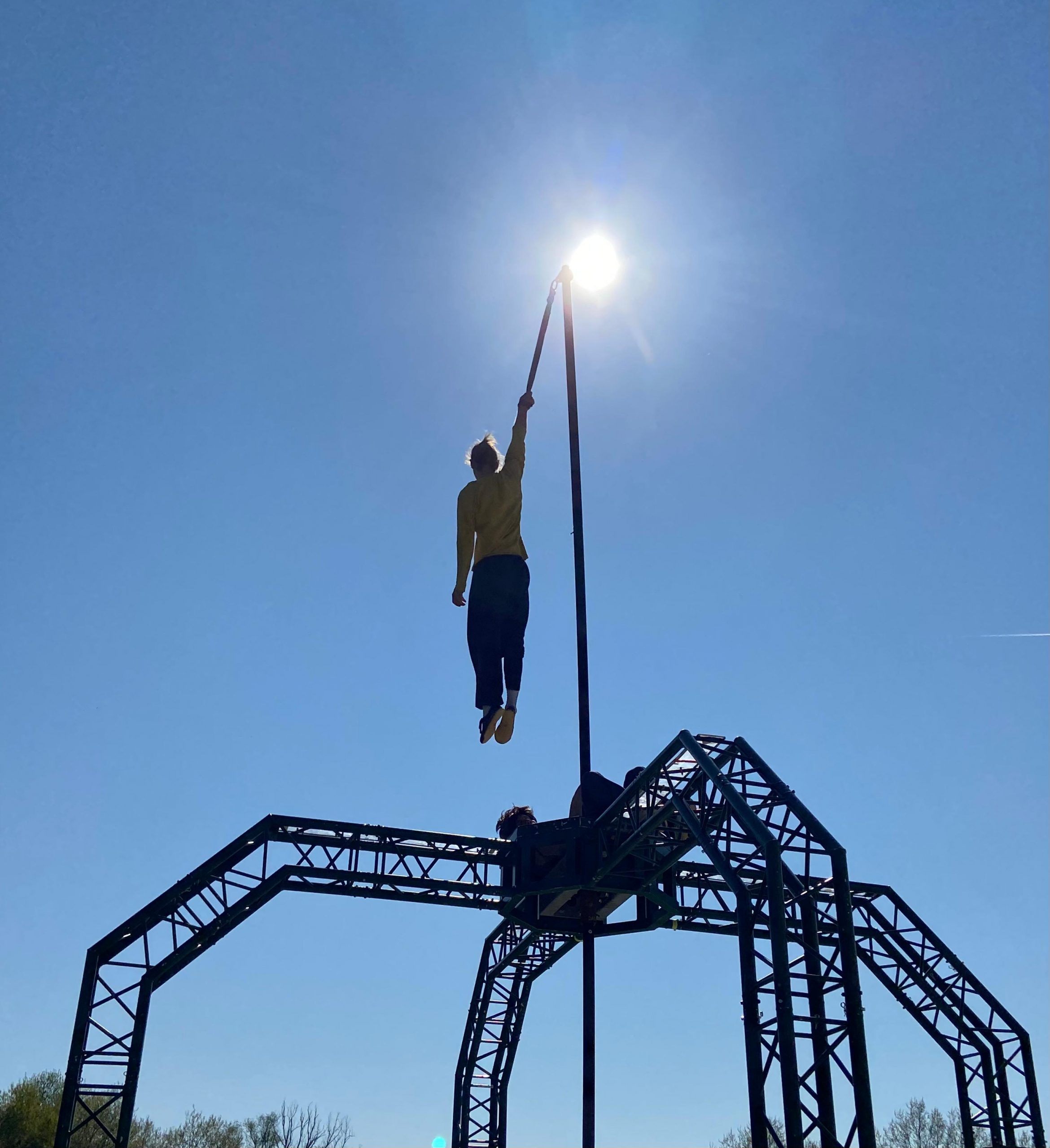 D’ordinaire ancré au sol, le mât devient ici un partenaire à part entière, vivant et capricieux. Avec le mouvement initié par les corps des interprètes, il devient tour à tour soutien, adversaire et complice. À travers une écriture acrobatique, ce duo poétique transforme cette verticalité imposée en une multitude de possibilités.